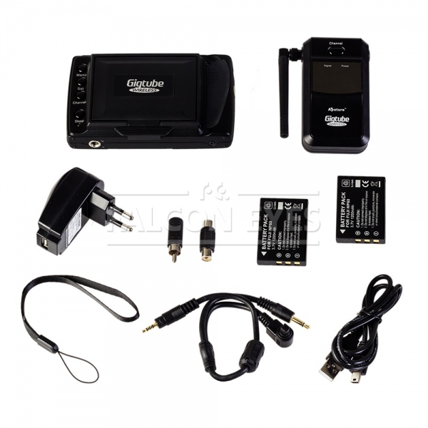 Видоискатель Aputure Gigtube Wireless GW1N позволяет дистанционно передавать изображение с матрицы фотоаппарата на удаленный до 100 м беспроводной монитор и управлять затвором камеры. Передатчик из комплекта GW1N предназначен для Nikon D300/D700 (возможно использование с другими камерами, соответствующий кабель приобретается отдельно). Устанавливается в горячий башмак камеры, соединяется с камерой с помощью проводов из комплекта. Передача графических данных осуществляется через радиоканал с частотой 433 МГц (сигнал спуска затвора передается на частоте 2,4 ГГц).