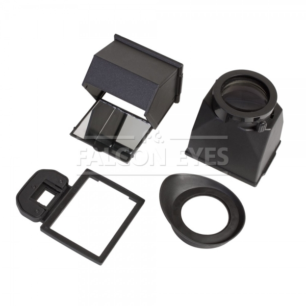 Первая насадка представляет собой видоискатель с 3х кратной линзой и резиновым наглазником, блокирует нежелательные блики от внешнего освещения и увеличивает изображение, данная насадка часто используется в системах стабилизации на основе рига. На окуляре насадки находится кольцо диоптрийной коррекции, это поможет настроить изображение под индивидуальные особенности зрения. Второй насадкой является угловой видоискатель ЖК монитора. С помощью системы зеркал позволяет повернуть изображение под углом 90˚ и увидеть отражение ЖК-монитора непосредственно над камерой. Это удобно при макросъемке, съемке с крайних нижних точек (когда трудно получить доступ к экрану низко расположенного фотоаппарата) и съемке событий происходящих сверху - птицы в полете, самолеты, парашютисты и т.д. В комплекте два пластиковых футляра для хранения комплекта.