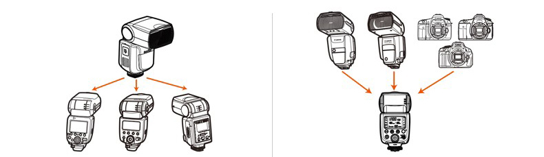 Поддерживает высокоскоростную синхронизацию (макс. 1/8000с), экспокоррекцию (FEC), блокировку экспокоррекции, синхронизацию по первой и второй шторке, режим моделирующего света, управление с дисплея меню камеры и т.п.